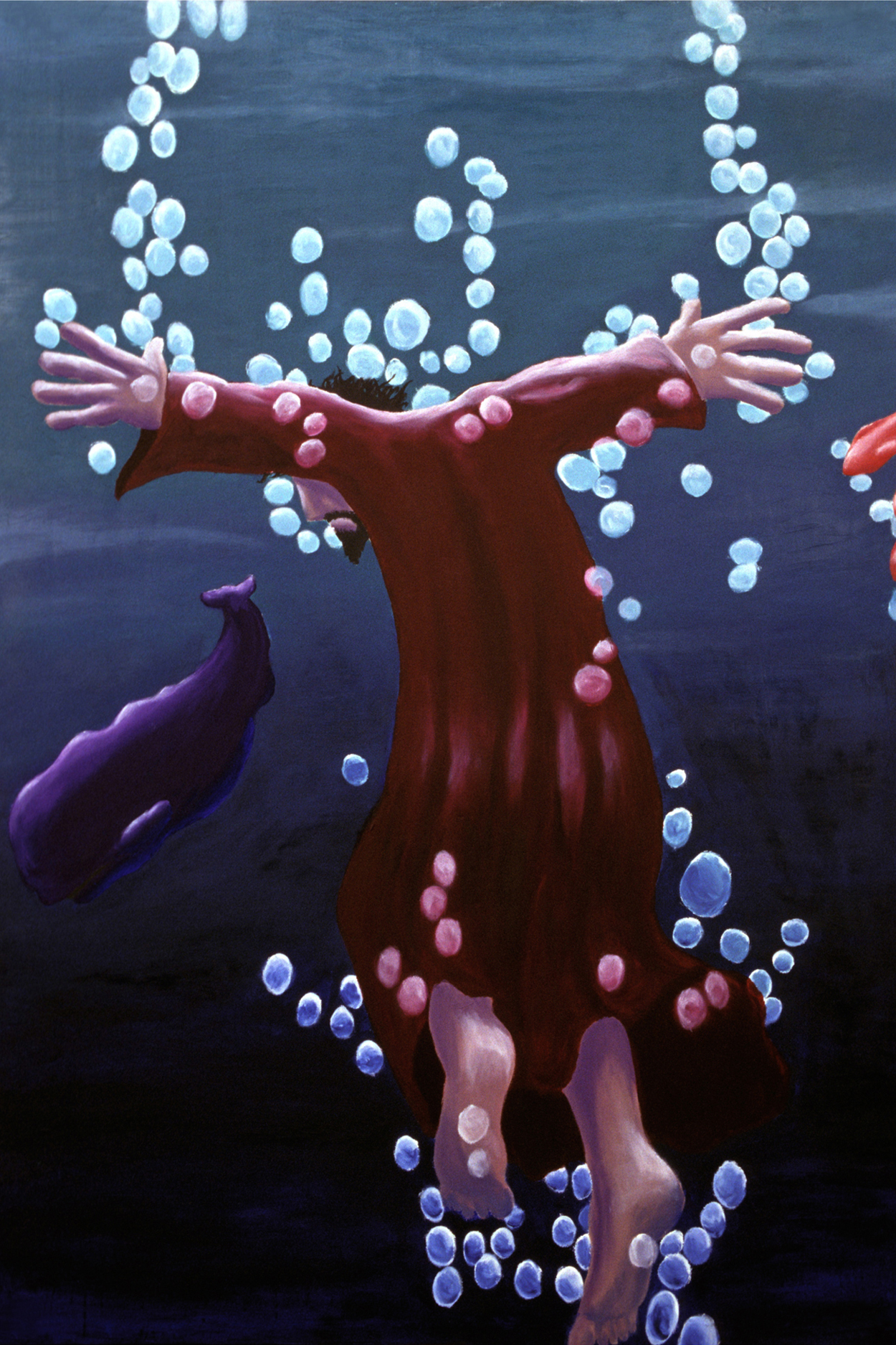 Oil painting of Jonah sinking into the sea, just before the great fish was about to swallow him up. Inspired by Jonah Chapter 1.